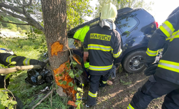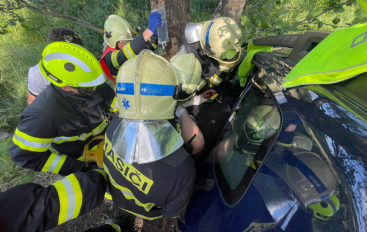 Po příjezdu na místo jednotky provedeným průzkumem potvrdily, že uvnitř vozidla které narazilo do stromu, zůstal zaklíněný zraněný člověk. Hasiči ve spolupráci se zdravotníky zdravotnické záchranné služby osobu za pomoci hydraulického vyprošťovacího zařízení z vozidla vyndali a následně ji pomohli přenést do vrtulníku Letecké záchranné služby.