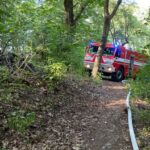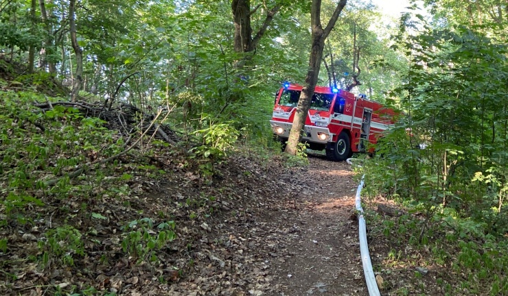MOST – Jedenáct hasičských jednotek likvidovalo dnes odpoledne požár lesního porostu na Špičáku v Mostě. Hasiči natáhli hadicové vedení. Hořelo na ploše 200×100 m.
