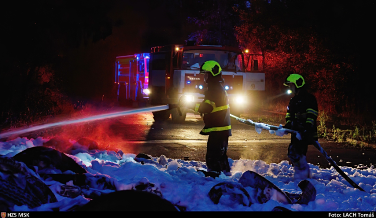 Zasahující jednotky k likvidaci požáru nasadily střední pěnu – pěna se využívá například pro izolaci hořlavé látky od přístupu vzduchu.