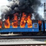 Jeden byl ohněm zasažen zcela, další částečně. Drážní hasiči Správy železnic zkratovali trakční vedení aby mohli bezpečně provést hasební zásah. Hasiči souběžně s hasebními pracemi prohledávali zbytek soupravy, zda se uvnitř nenachází nějaké osoby. Doposud naštěstí nikoho nenalezli.