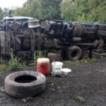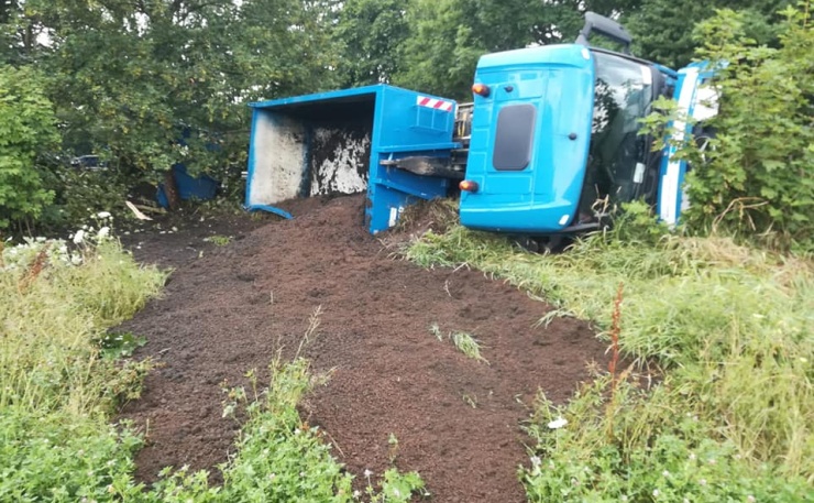 Havarovaný kamion skončil po nehodě na boku v příkopu. Jednu zraněnou osobu záchranáři převezli do nemocnice. Ke střetu došlo v 15.56 hodin a okolnosti střetu i nadále vyšetřují dopravní policisté.