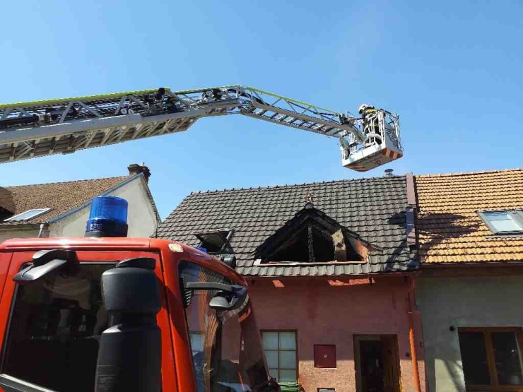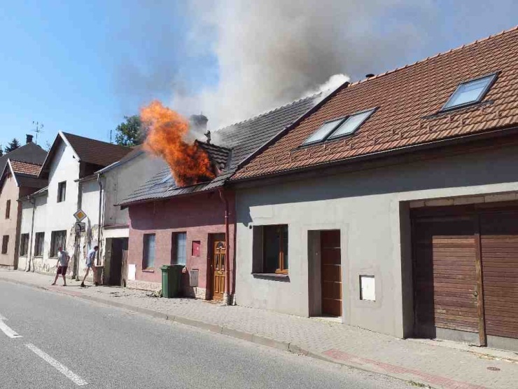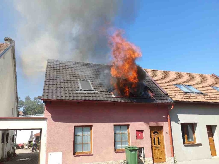 VYSOKÉ MÝTO – Jako mimořádnou událost vedou hasiči HZS Pardubického kraje dnešní požár střechy rodinného domu ve Vysokém Mýtě. Od 10.47 hodin vyjížděly postupně jednotky ze stanice Vysoké Mýto a Ústí nad Orlicí, hasiči z firmy Iveco Czech Republic a dobrovolné jednotky z Chocně, Vysokého Mýta a Zámrsku. Po příjezdu na nahlášenou adresu byla střecha v přední části v plamenech, které postupně zasahovaly do zadní části krovu.