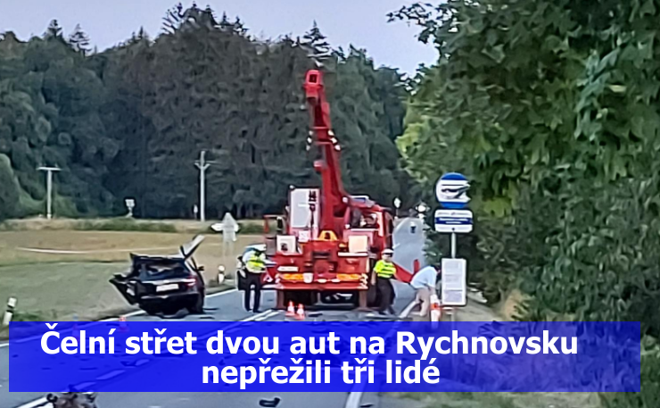 RYCHNOVSKO – K tragické dopravní nehodě, při níž vyhasl život tří lidí, vyjížděli včera okolo 18.00 hodiny rychnovští dopravní policisté. Krátce předtím operační důstojník na lince 158 přijal oznámení o střetu dvou vozidel na silnici 2. třídy mezi Rychnovem nad Kněžnou a Rokytnicí v Orlických horách. Jedno z havarovaných aut skončilo mimo silnici na boku!
