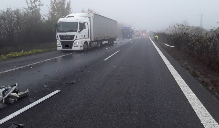 LITOMĚŘICKO – Na dálnici D8 na 41 kilometru ve směru na Praha na Litoměřicku od 11:38 hodin zasahují jednotky profesionálních hasičů ze stanic Lovosice a Litoměřice u dopravní nehody 3 nákladních automobilů.