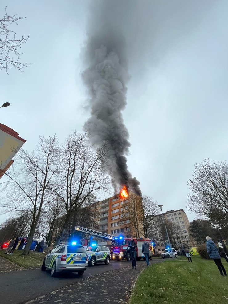 Vysoké plameny šlehaly nejen z oken bytu v celém patře ale i ze střechy.  Podle hasičů nebyl při požáru naštěstí nikdo zraněn. Hasiči, policisté i strážníci následně evakuovali z celého vchodu paneláku osm lidí.