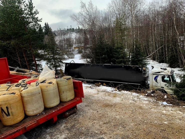 Vyproštění kamiónu a odbagrování kontaminované půdy bude řešit majitel kamiónu.