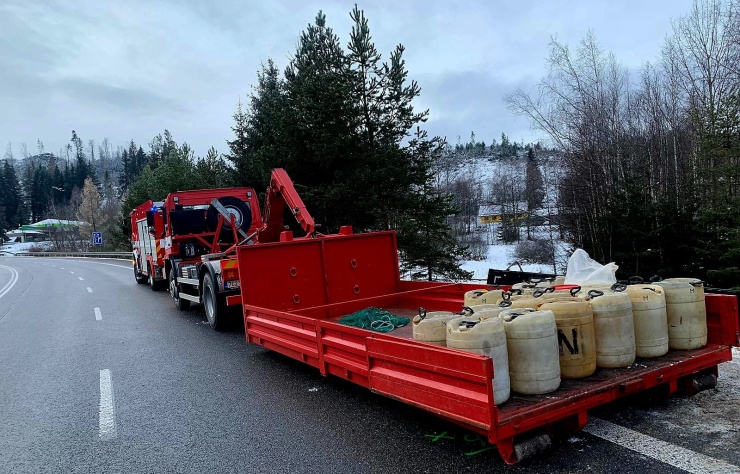 Přivolaní hasiči přečerpali z nádrží havarovaného vozu 600 litrů nafty, přibližně 100 litrů vyteklo do země. Hasiči si dovezli dostatek sorbentu, kterým sanují vozovku. Sorbčními hady a dalším sorbentem brání kontaminaci další půdy a hlavně potoka, kde mimo jiné sídlí bobři.