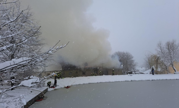 ČESKOBUDĚJOVICKO – Informaci o požáru přijali hasiči na Českobudějovicku na tísňovou linku dnes v 7:35 hodin. Do Nové Vsi, části obce Hůrka operační důstojníci vyslali profesionální hasiči ze stanice Suché Vrbné a svolali jednotky SDH obcí Nová Ves, Ledenice a Borovany. Jako posilová jednotka k požáru byly následně vyslány také osádky vozů ze stanice České Budějovice. Vyjelo celkem 6 cisteren, dopravní automobil a automobilový žebřík. Takovéto množství vyslané techniky rozhodli operační důstojníci i vzhledem k sjízdnosti/nesjízdnosti komunikací.
