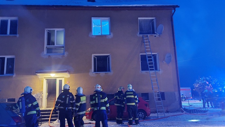 ČESKOLIPSKO – Hasiči se šesti cisternami a výškovou technikou vyjeli včera krátce po čtvrté hodině odpolední k požáru bytového domu do Valteřic na Českolipsku.