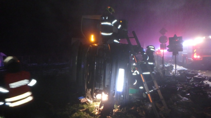 Z havarovaného osobního automobilu museli vyprostit jednu zraněnou osobu, řidič dodávky byl bez zranění. Vůz s pečivem se po střetu převrátil na bok, zpět na kola ho vracel vyprošťovací automobil HZS.