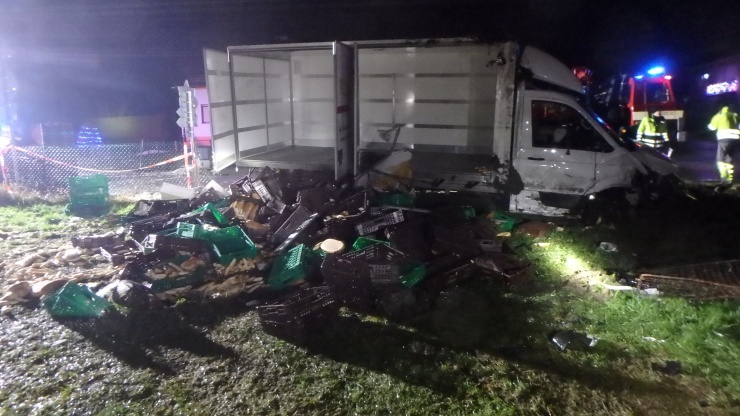 RYCHNOVSKO – V noci zasahovali hasiči u střetu osobního auta s dodávkou převážející pečivo u Olešnice na Rychnovsku.