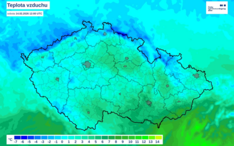 Čerstvý jihozápadní vítr přinese teplejší vzduch a hlavně v Čechách bude nezvykle teplo, čekáme teploty od 12 do 16 °C, na Moravě teploty zůstanou mezi 7 a 11 °C.