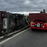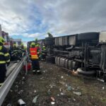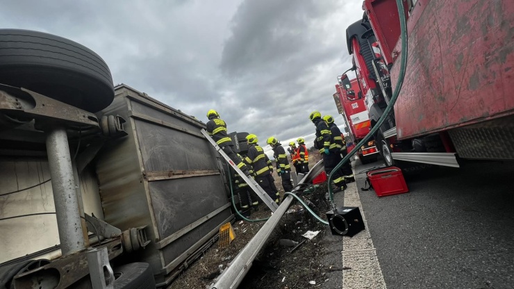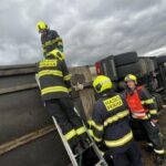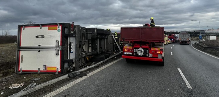 PRAHA – Hasiči ze satalické a strašnické stanice zasahovali dnes odpoledne v Novopacké ulici v Praze 9 u nehody kamionu, který se převrátil na bok v zatáčce ve směru na Černý Most.