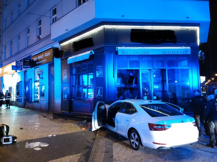 Řidič osobního auta v Praze vjel nad ránem na chodník a srazil tři chodce! Auto pak narazilo do výlohy obchodu