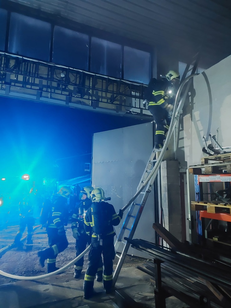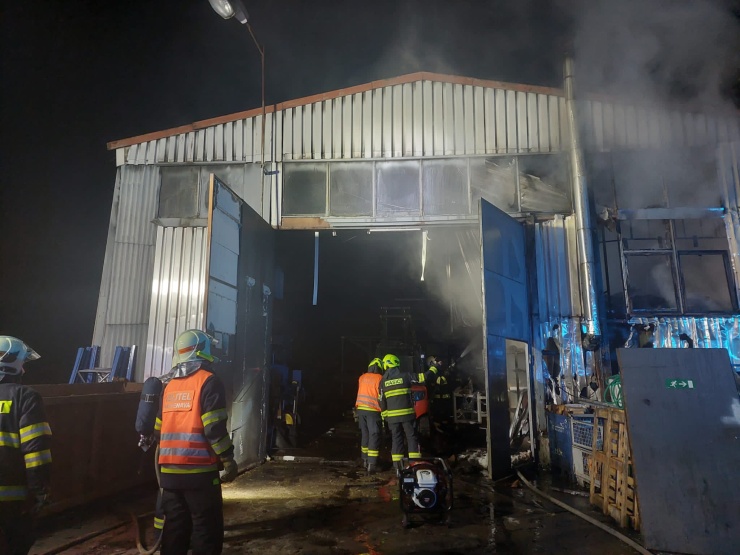 OLDŘICHOV V HÁJÍCH – Jednotky hasičů z druhého stupně požárního poplachu zasahují u požáru haly v Oldřichově v Hájích.