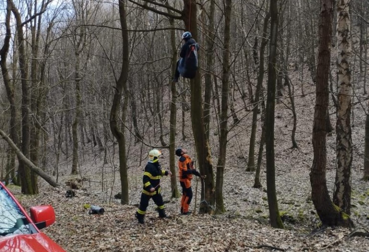 K druhému případu vyjeli hasiči ze stanice Teplice a jednotka Krupka – Bohosudov. Nedaleko zříceniny hradu Kyšperk uvízl paraglidista v koruně stromu. Hasiči za pomoci lezecké techniky pomohli paraglidistovi bezpečně na zem. Celá událost se obešla bez zranění.