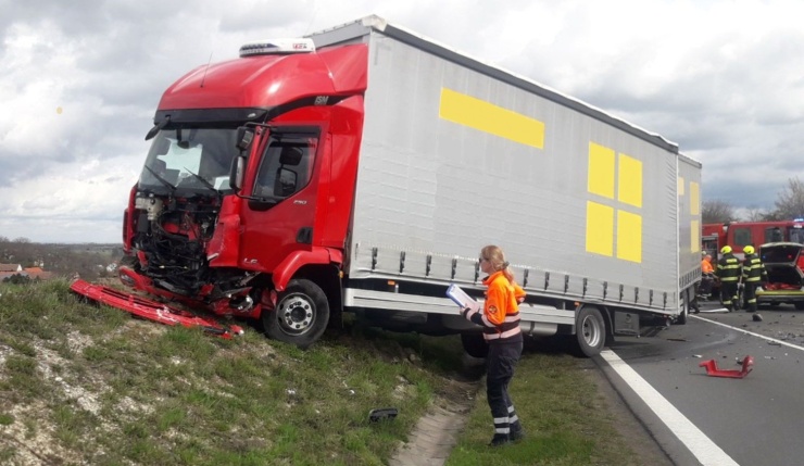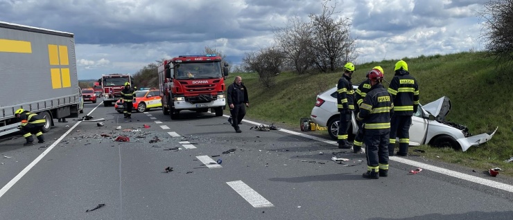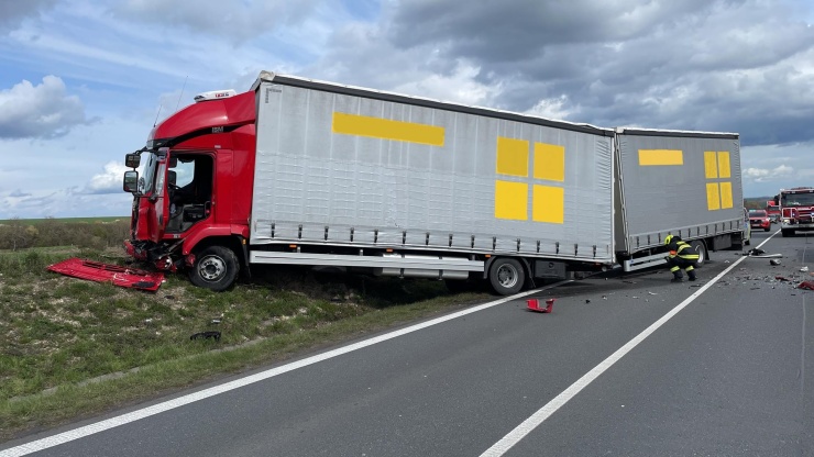 NETOVICE – K dopravní nehodě nákladní soupravy a osobního automobilu na silnici I/7 u obce Netovice poblíž Slaného byly vyslány profesionální jednotky ze Slaného a Kladna.