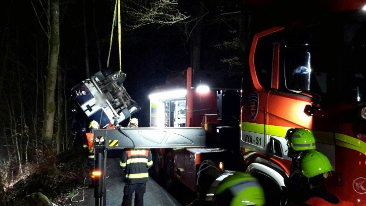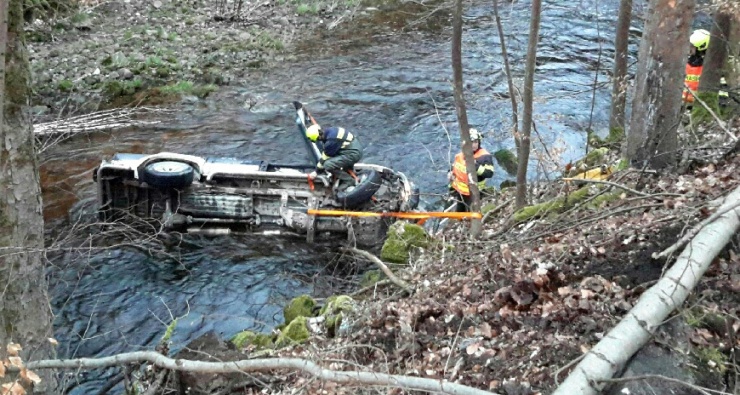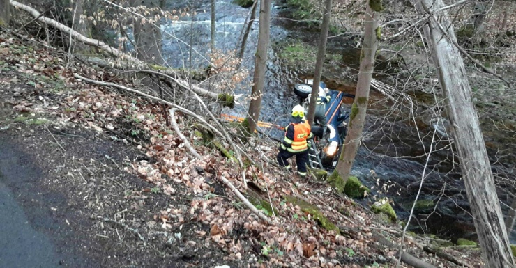SMOLNÉ PECE – Osobní auto havarovalo na silnici u obce Smolné Pece na Karlovarsku. Spadlo ze zhruba osmimetrového srázu a skončilo převrácené na bok v řece Rolavě.