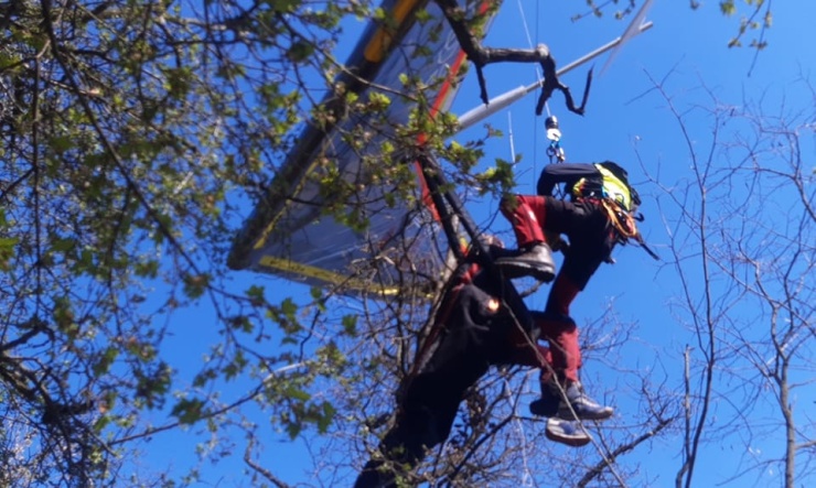 ČERNOŠICE (Praha-západ) – Zraněného rogalistu, který zůstal viset i s rogalem na stromě, zachránili středočeští a pražští hasiči ve spolupráci s Leteckou službou PČR.
