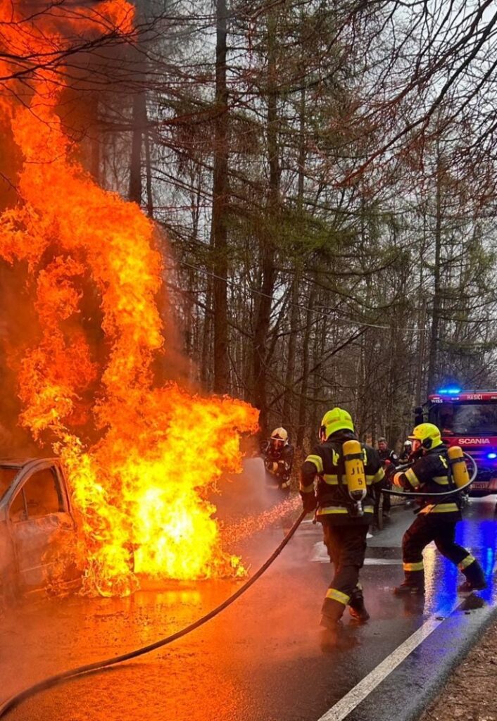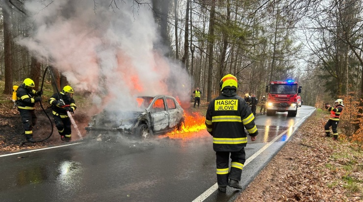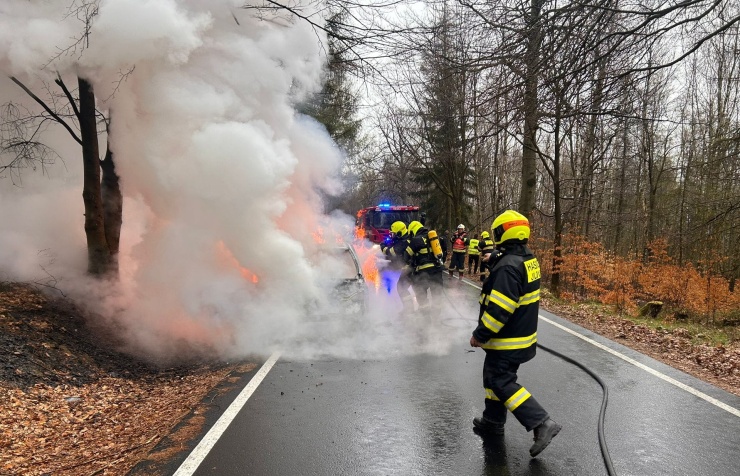 DĚČÍNSKO – Jednotka profesionálních hasičů ze stanice Děčín a dobrovolná jednotka z Jílového zlikvidovaly požár osobního auta na Sněžníku.
