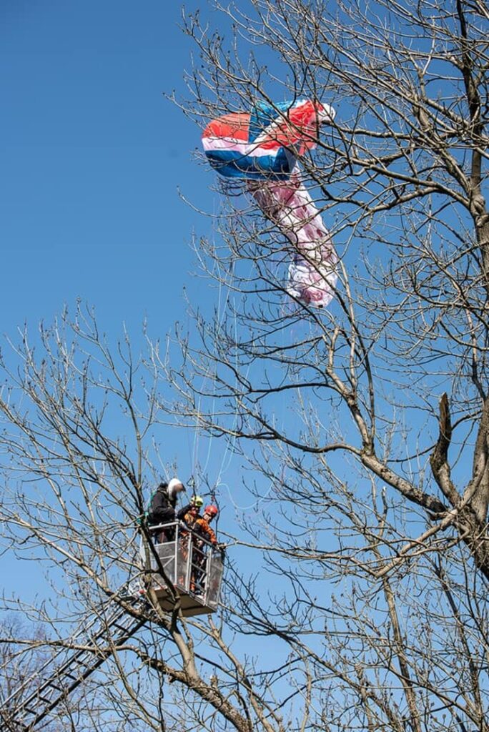 Přivolaní hasiči za pomoci automobilového žebříku pomohli nezraněnému paraglidistovi bezpečně na zem. Na místě zasahovaly jednotky profesionálních hasičů ze stanic Varnsdorf a Děčín a jednotka sboru dobrovolných hasičů Horní Podluží.