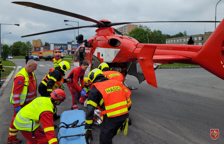 Dvaatřicetiletý muž byl v automobilu zaklíněn. Utrpěl vážné poranění dolní končetiny. Posádky jej umístily do vakuové matrace, podaly léky do kostní dřeně, kyslík a vrtulník LZS pacienta přepravil na urgentní příjem ostravské Fakultní nemocnice.