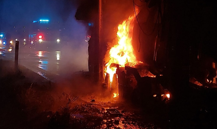 Po příjezdu první jednotky a průzkumu bylo upřesněno, že jde o požár soupravy nákladního automobilu se třemi a velkého přívěsu s pěti novými osobními automobily. Přívěs už byl v plamenech celý a na nákladním autě bylo zasaženo vozidlo v horním patře.