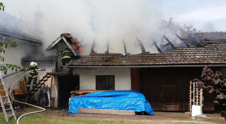 Po příjezdu první jednotky a rychlém průzkumu bylo upřesněno, že požár zasáhl hospodářskou část rodinného domu, ve které byla truhlářská dílna s několika stroji, a plameny už šlehají skrz střešní krytinu. Majitel objektu se snažil požár hasit pomocí kýblů s vodou a hrozilo, že se nadýchal kouře. Proto byla k události přivolána i zdravotnická záchranná služba.