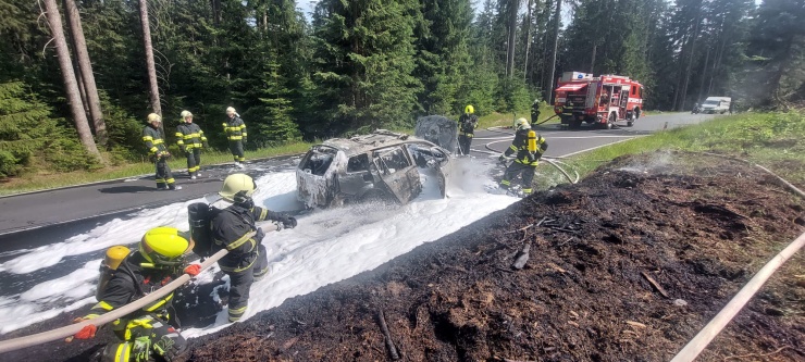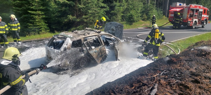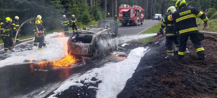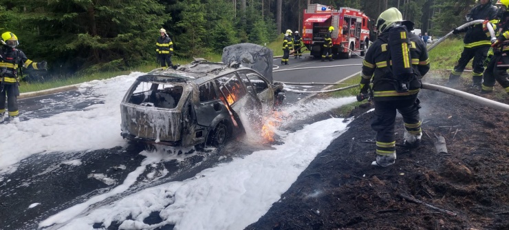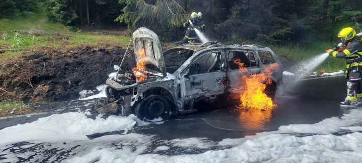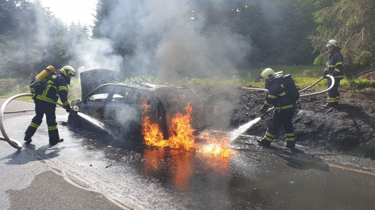 JÁCHYMOV – Osobní auto začalo hořet včera odpoledne na silnici mezi Jáchymovem a Abertamy. Oheň se rozšířil i na porost podél silnice. Na místě zasahovaly čtyři jednotky hasičů.