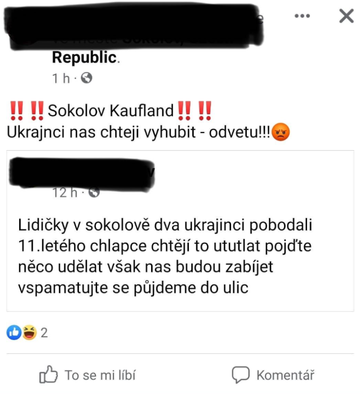 Autor na sociální síti zveřejnil status o pobodání jedenáctiletého chlapce dvojicí Ukrajinců s tím, že incident má být ututlán! Neověřenou dezinformaci pak sdílel na sociální síti… K žádnému podobnému incidentu v Sokolově ale nedošlo!