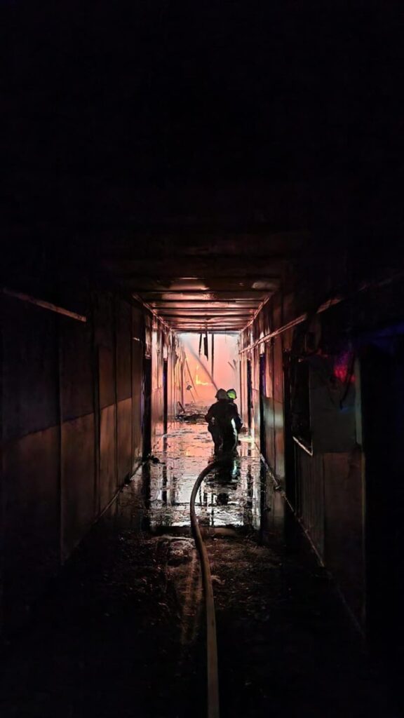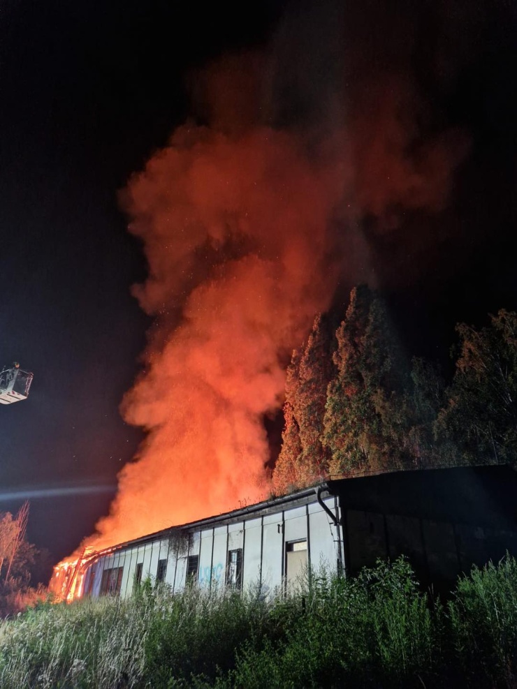 Opuštěný a vybydlený objekt o rozměru 90 x 20 metrů byl zasažen téměř z poloviny. Lokalizace pomocí 5 vodních proudů byla ohlášena ve 2:28 hodin následovalo dohašování a rozebírání konstrukce a kolem 4. hodiny došlo k vystřídání zasahujících hasičů.