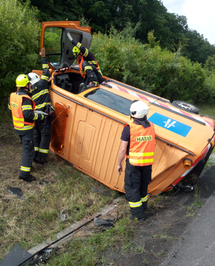 CHLUMEC NAD CIDLINOU – Na 78km dálnice D11 směr z Prahy do Hradce Králové u Chlumce nad Cidlinou zasahovaly složky Integrovaného záchranného systému ČR u vážné dopravní nehody dvou vozidel. Dodávka tam smetla dopravní šipku i vozidlo údržby dálnice!