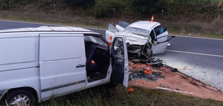 Po příjezdu první jednotky na místo bylo upřesněno, že jde o čelní střet malého dodávkového vozidla a osobního automobilu. Řidič dodávky zůstal zaklíněný v kabině a nejevil známky života. Lékař zdravotnické záchranné služby následně potvrdil jeho exitus. V osobním autě cestovala žena se dvěma dětmi školního věku. Vážně zraněnou řidičku transportoval do nemocnice vrtulník, další vrtulník odletěl do nemocnice s jedním ze zraněných dětí. Druhé dítě utrpělo zranění lehčího charakteru a byla mu přítomným členem týmu posttraumatické péče poskytnuta psychologická pomoc, zároveň mu hasiči předali plyšovou hračku.