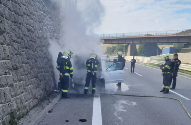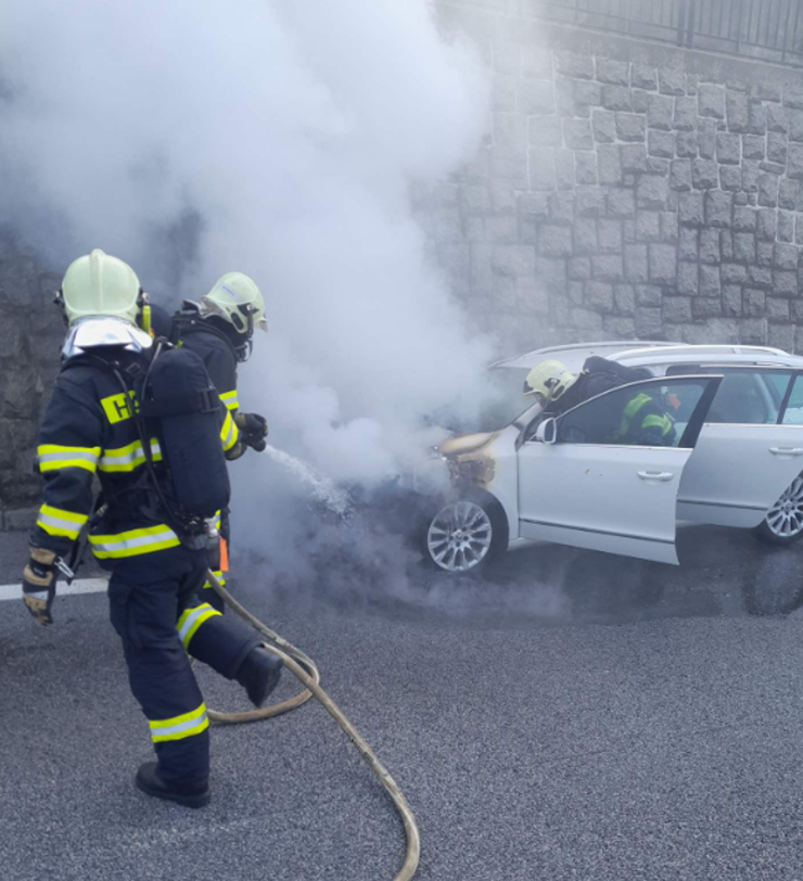 Požár motorové části přivolaní hasiči lokalizovali během přibližně 10 min. V současné chvíli je provoz na komunikaci usměrňován jedním jízdním pruhem.