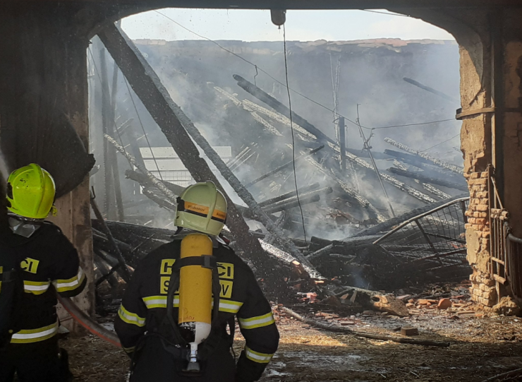 BENEŠOVSKO – Jednotky hasičů zasahují v obci Krhanice na Benešovsku u požáru statku. Došlo k propadnutí střechy budovy, hasiči proto zasahují pouze z venku. Vyhlášen byl již 3. stupeň požárního poplachu, protože na místě je potřeba větší počet cisteren pro dopravu vody k hašení. Pozářiště je rozděleno na 2 úseky.