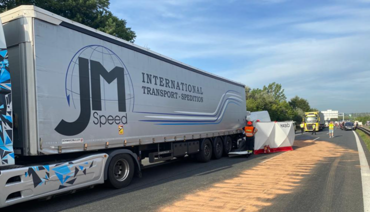 Na místě zasahují všechny složky Integrovaného záchranného systému ČR. Za nehodou, při níž zemřel řidič dodávky, se ve směru na Brno vytvořila několikakilometrová kolona. Policisté odklánějí dopravu už na sjezdu Kývalka.