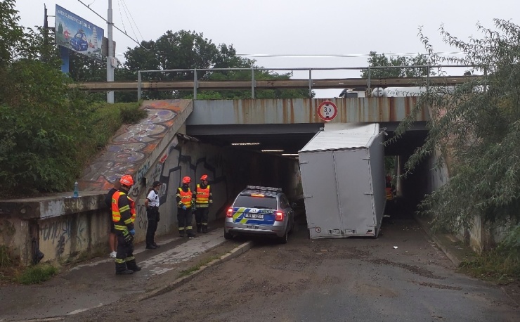 BRNO – Nákladní automobil se včera odpoledne zasekl pod mostem v brněnské Líšni. Hasičům ze dvou jednotek se jej podařilo vyprostit za zhruba hodinu.