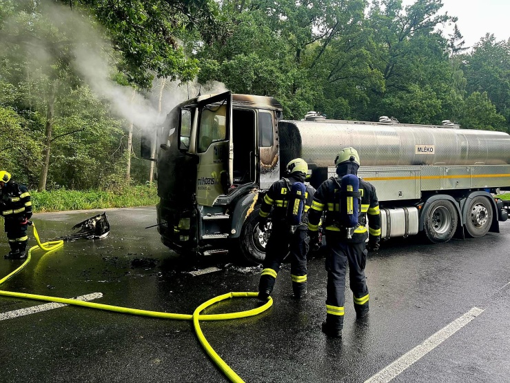 CHÝNOV – Požár byl hasičům dnes nahlášen v 8:59 hodin. Táborská profesionální jednotka hasičů hořící kabinu automobilové cisterny uhasila během půl hodiny.