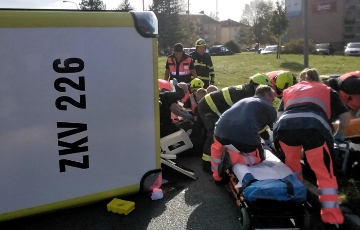 OSTROV – Dvě jednotky hasičů zasahovaly dnes u dopravní nehody osobního auta a sanitky záchranné služby. U střetu zasahovaly složky Integrovaného záchranného systému ČR včetně vrtulníku leteckých záchranářů. Nehoda se stala po desáté hodině odpoledne na světelné křižovatce v Ostrově na Karlovarsku.