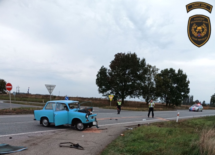 UHERSKOHRADIŠŤSKO – O obrovském štěstí může mluvit řidič vozidla Trabant, který se před třetí hodinou odpolední střetl ve Starém Městě na Uherskohradišťsku v křižovatce směrem na Zlechov s osobním autem Škoda Superb.