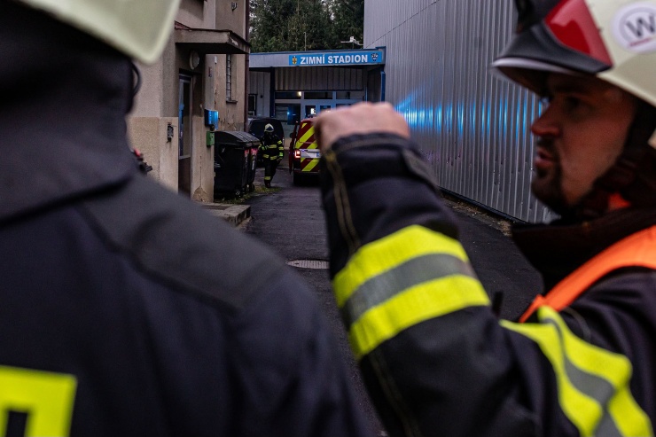 Zaměstnanci stadionu opustili objekt ještě před příjezdem hasičů – ke zranění osob nedošlo.
