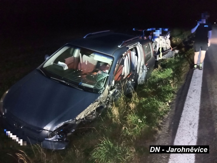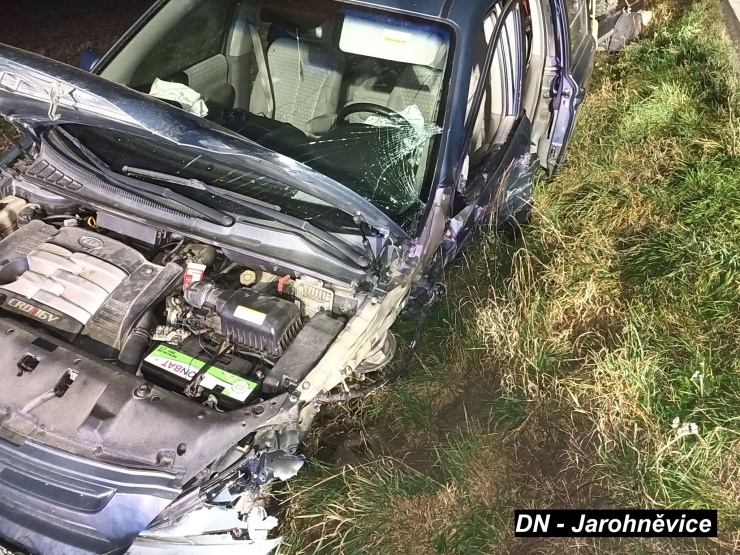 Ke druhé dopravní nehodě vyjeli po půl sedmé profesionální hasiči z centrální stanice Kroměříž. Nehoda se stala mezi obcemi Jarohněvice a Šelešovice. Hasiči na místě poskytli dvěma osobám první předlékařskou péči a po příjezdu záchranářů je předali k dalšímu ošetření. Kromě běžných úkonů nasvěcovali místo nehody a asistovali při nakládání vozidel na vozy odtahové služby.