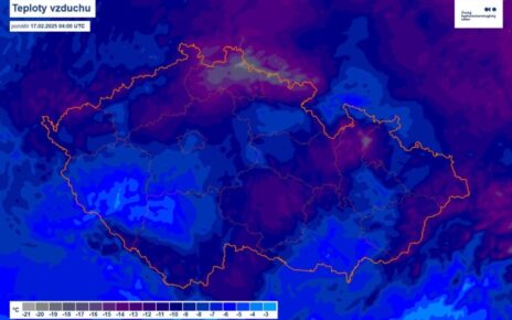 ČESKO – Probudili jsme se do teplého rána, teploty vzduchu se pohybují většinou mezi 8 a 12 °C. Dnes nás čeká převážně velká oblačnost, místy zejména na horách s deštěm nebo přeháňkami.