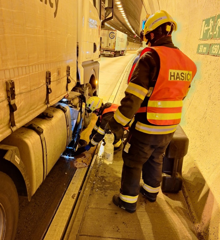 ÚSTECKO – Jednotky profesionálních hasičů ze stanic Petrovice a Ústí nad Labem vyjely včera k dopravní nehodě osobního auta a kamionu v dálničním tunelu Libouchec na dálnici D8 ve směru na Německo.