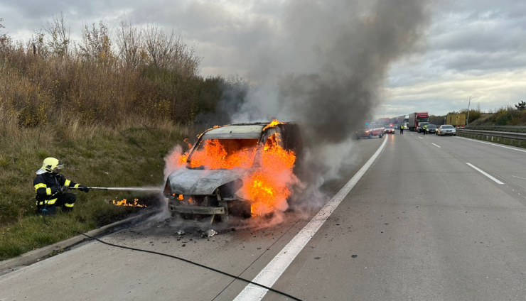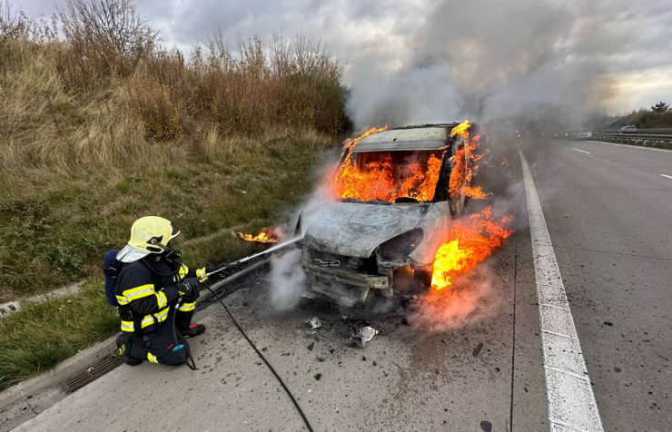 STŘEDOČSKÝ KRAJ – Včera odpoledne na D0 0,5 km ve směru Ruzyně profesionální hasiči z Jílového u Prahy, Říčan a v rámci mezikrajské výpomoci také z Modřan zlikvidovali pomocí několika vodních proudů požár dodávkového vozu, který byl na alternativní pohon CNG.