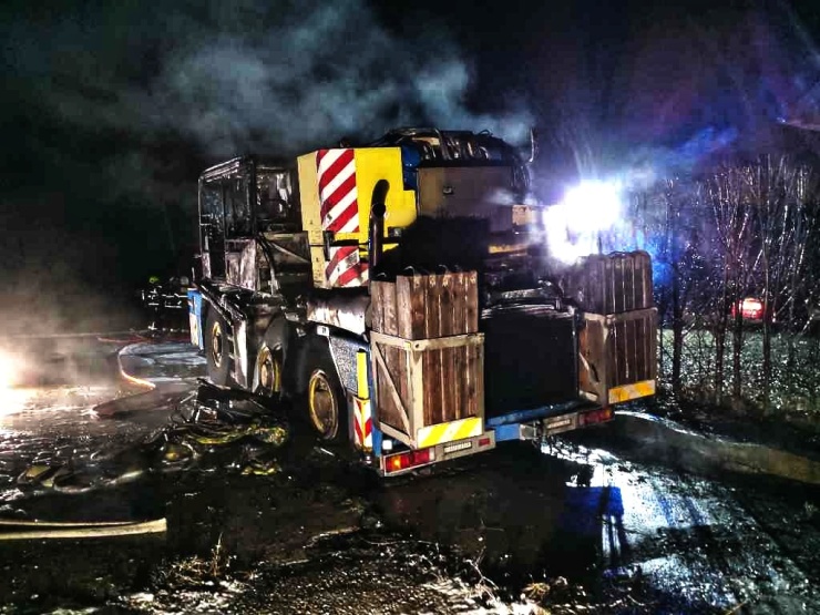 Po dvacáté hodině vyjely jednotky jihomoravských hasičů k hlášenému požáru autojeřábu do Bučovic na Vyškovsku. V době příjezdu první jednotky byl již celý jeřáb v plamenech. K hašení a k ochraně dalšího blízko zaparkovaného jeřábu a vedle stojícího objektu hasiči nasadili několik vodních a pěnových proudů.