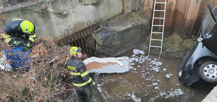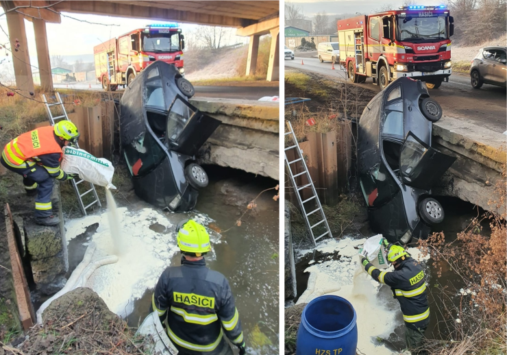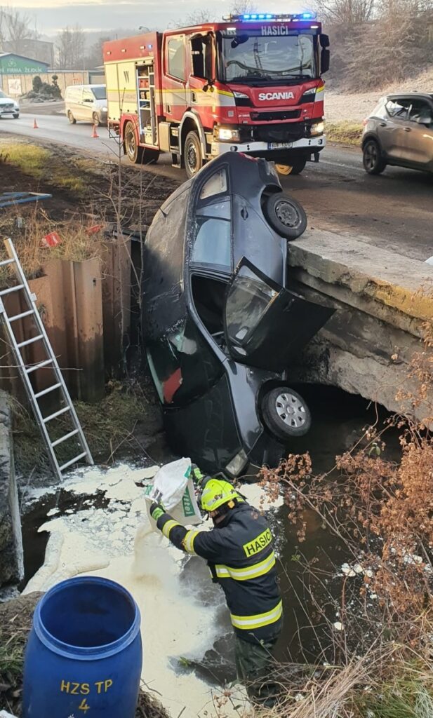 BÍLINA – U dopravní nehody osobního vozu, které vlivem nehody skončilo v potoce, zasahuje jednotka profesionálních hasičů ze stanice Bílina. Nehoda se stala v Bílině Mosteckém Předměstí.