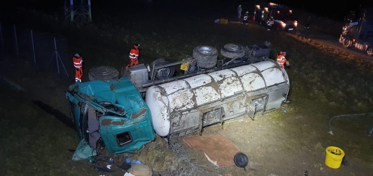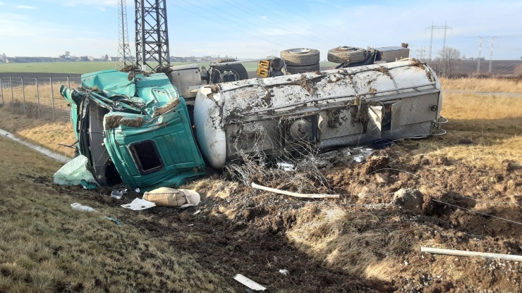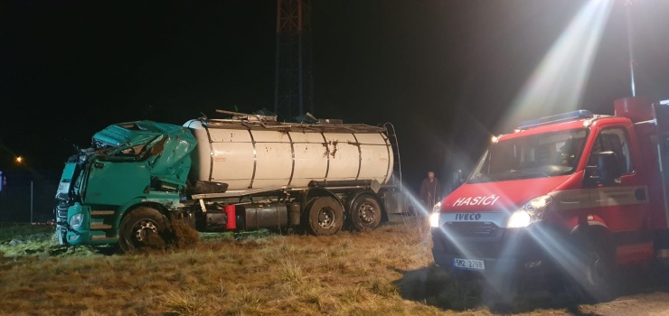 PŘEROVSKO – Dopravní nehoda cisterny převážející ocet na dálnici D1 v k.ú. Radvanice (okres Přerov) řešily 3 hasičské jednotky (CHS Přerov, HS Lipník n./B. a JSDH Veselíčko).