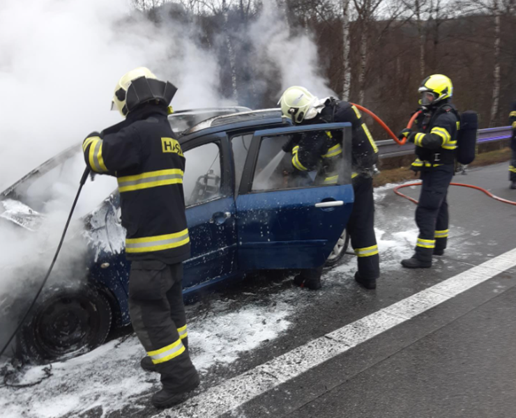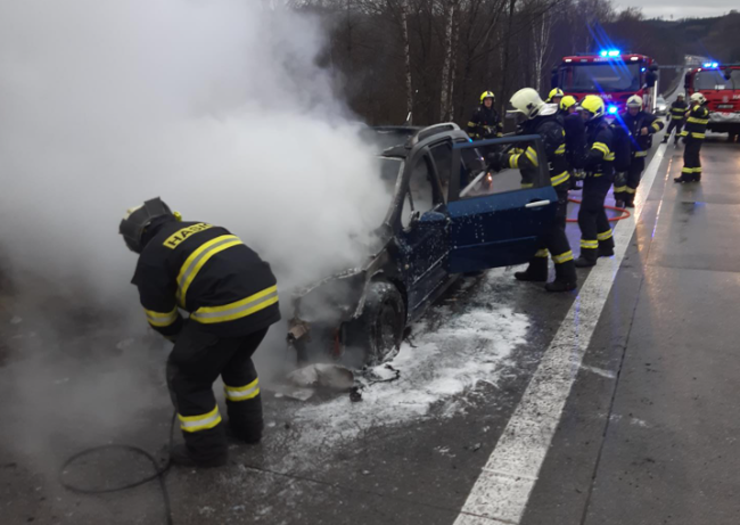 STŘEDOČESKÝ KRAJ – Jednotky hasičů aktuálně zasahují na dálnici D1 Praha – Brno u požáru osobního automobilu. Místo je průjezdné pouze jedním pruhem a může dojít ke krátkodobému zastavení provozu.