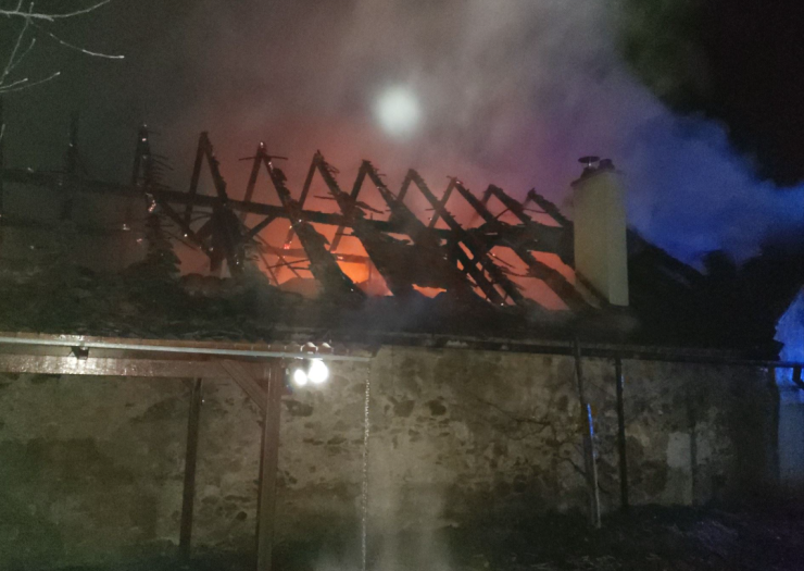ZNOJEMSKO – Už téměř 14 hodin zasahují jednotky hasičů u požáru střechy rodinného domu v obci Tulešice na Znojemsku.